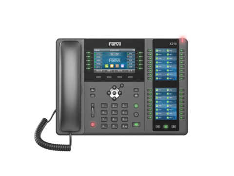 X210是一款高端商务IP话机,适用于需要灵活性和高级功能的用户,以便在工作中轻松应对繁忙的电话通讯。 X210的4.3英寸主彩色显示屏上有10个DSS按键,两个3.5英寸侧面彩色显示屏上最多可配置96个DSS按键(32个物理按键),因此X210最多可配置106个DSS按键,用于设置BLF/快速拨号、组播功能等。X210还配备了高清语音,内置蓝牙,支持Wi-Fi连接,支持EHS,千兆双网口,PoE,可与IP摄像头/视频门禁连接。配备高端功能的X210能够极大的提高企业通讯效率。