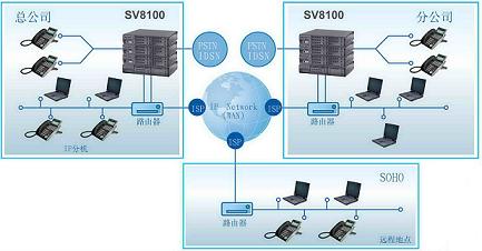 | SV8100系统在WAN上,通过NETLINK,他可以做到1个中央工作站管理最多16个地点,712个端口。所有的资源和功能都在主服务器和远程服务器进行共享,我们就有了单一的系统配置、语音信箱和维护点,大大方便了对系统的维护。 强大的可扩展能力及可堆叠的系统结构 |